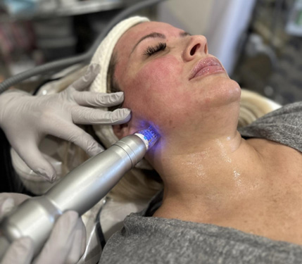 The treatment is ideal for clients looking to reduce the appearance of wrinkles, fine lines, acne scars, large pores, and sagging skin. Scarlet SRF’s precise delivery system ensures minimal discomfort and little to no downtime. Most clients describe the procedure as tolerable, and a topical anesthetic is applied for enhanced comfort. The result is smoother, tighter skin that improves over time.